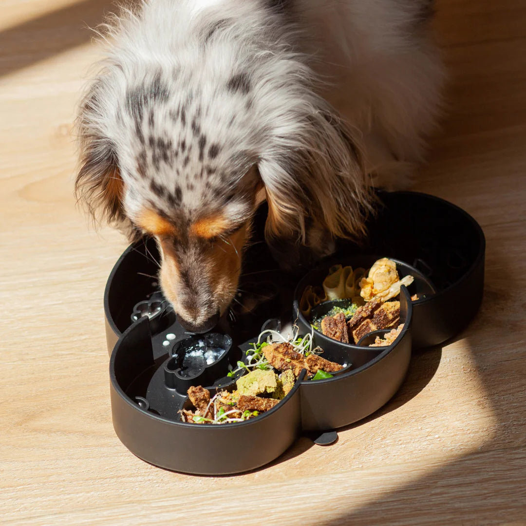 我們想把這個訊息傳出去,特別是對於那些狼吞虎嚥的小狗!放慢進食速度有助於消化,可以緩解腹脹和脹氣等問題。此外,這也有助於寵物充分咀嚼和分解食物,從而更好地吸收食物中的營養。